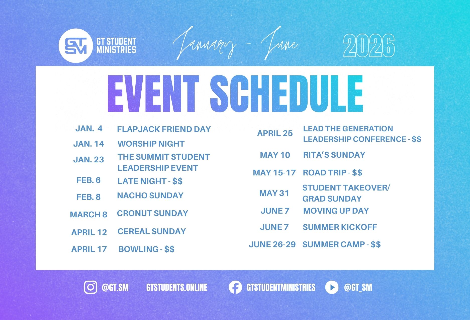 GT Student Ministries provides engaging, relevant programming for students in grades 7-12.