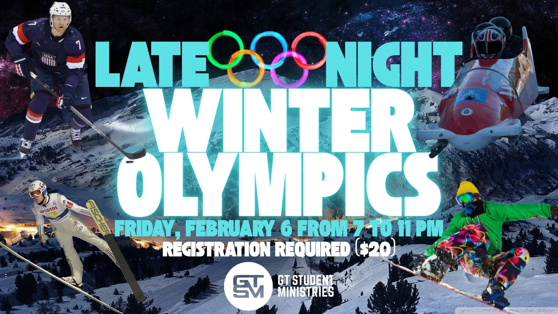 Join us for a Late Night Winter Olympics filled with games, competitions, food, prizes, and tons of fun. We will also gather for a powerful worship service as we seek God together. Do not miss one of the most exciting nights of the year.